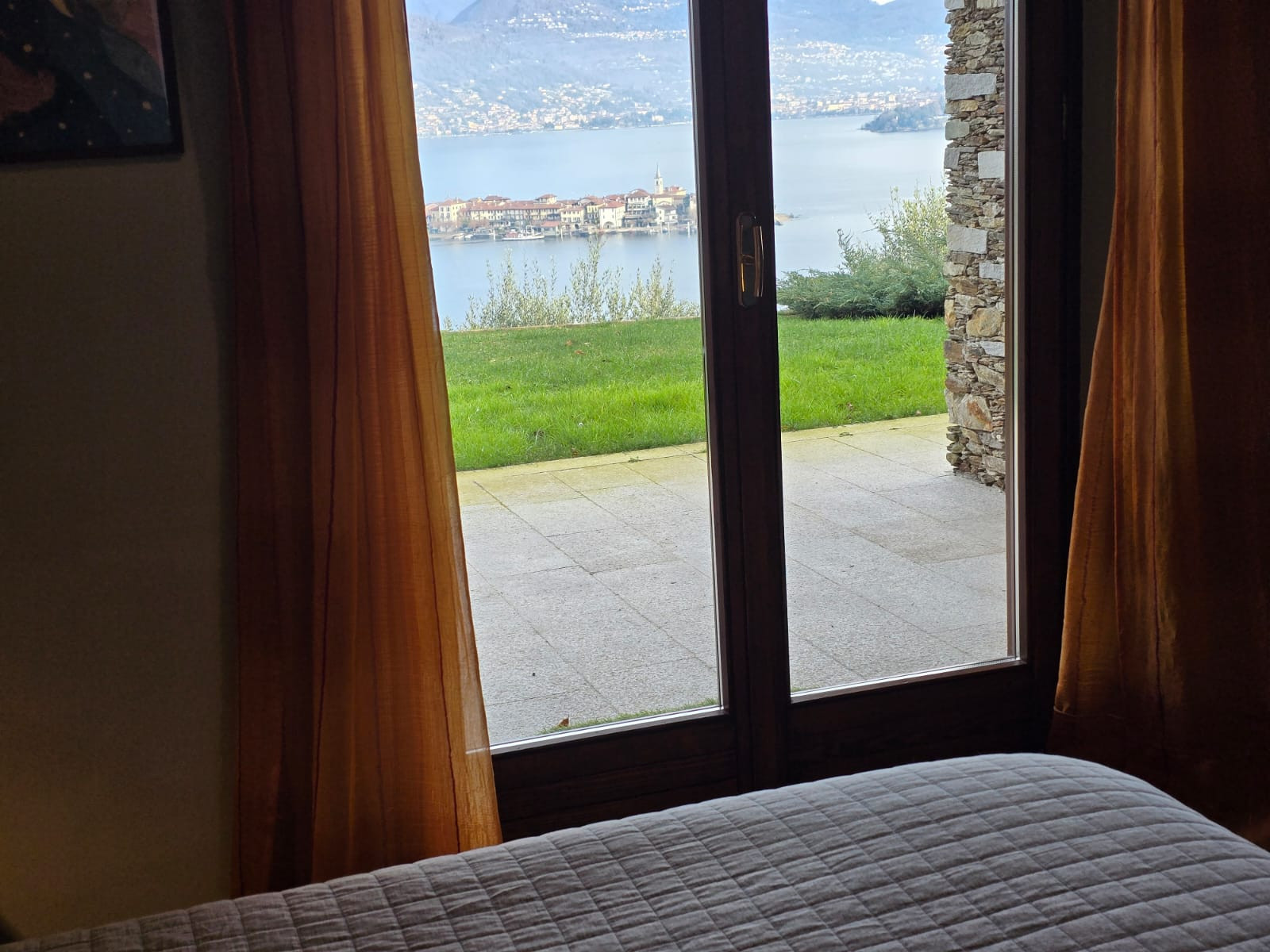 La zone nuit est située au niveau du jardin, avec toutes les chambres donnant directement sur la terrasse et la vue magnifique des Îles Borromées.