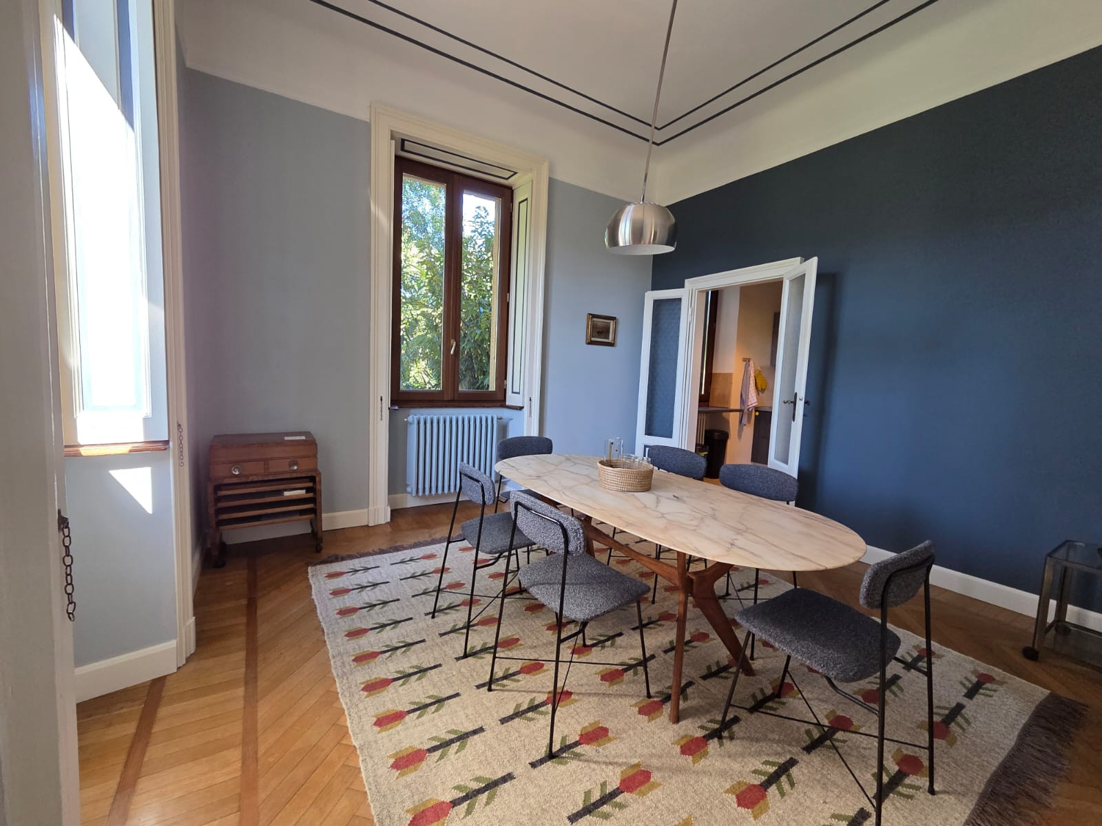 La villa offre une vue imprenable sur le lac, est meublée avec des meubles anciens et dispose de grands espaces intérieurs ainsi que d’un espace extérieur finement aménagé, des solutions qui rendent cet endroit unique en son genre.
