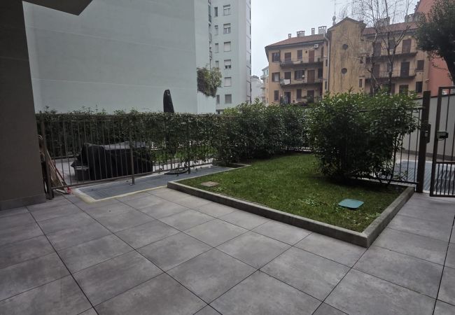 L'appartamento ha accesso a un giardino privato per uso esclusivo, ideale per vivere Milano anche in modo stagionale.