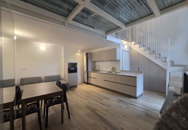 Il loft, arredato con mobili moderni di nuova costruzione, è disposto su due livelli: