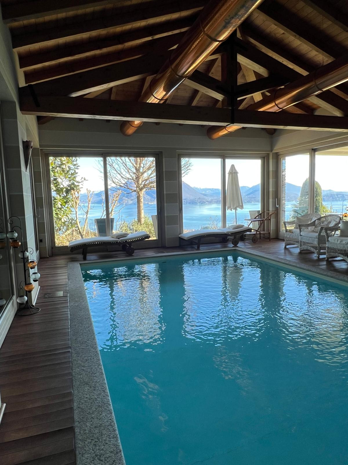 Il vero gioiello della villa è la piscina coperta e riscaldata 🔥, fruibile 12 mesi l’anno, circondata da ampie vetrate con accesso diretto al giardino vista lago 🌄: un privilegio raro che trasforma ogni soggiorno in un’esperienza unica.