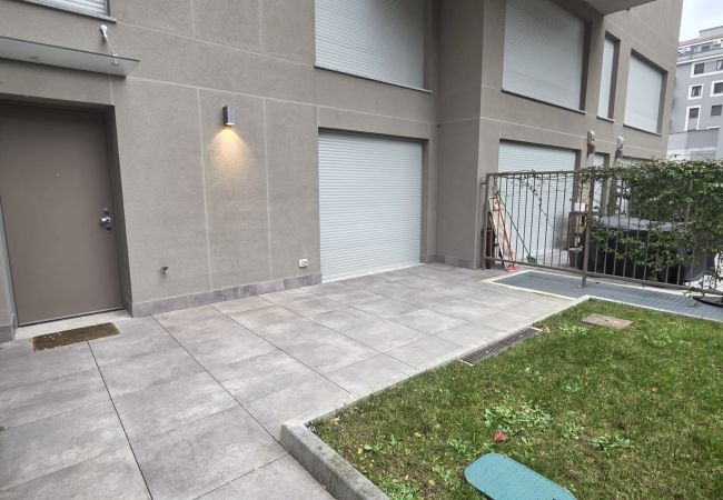 Design an apartment with a private garden for exclusive use.